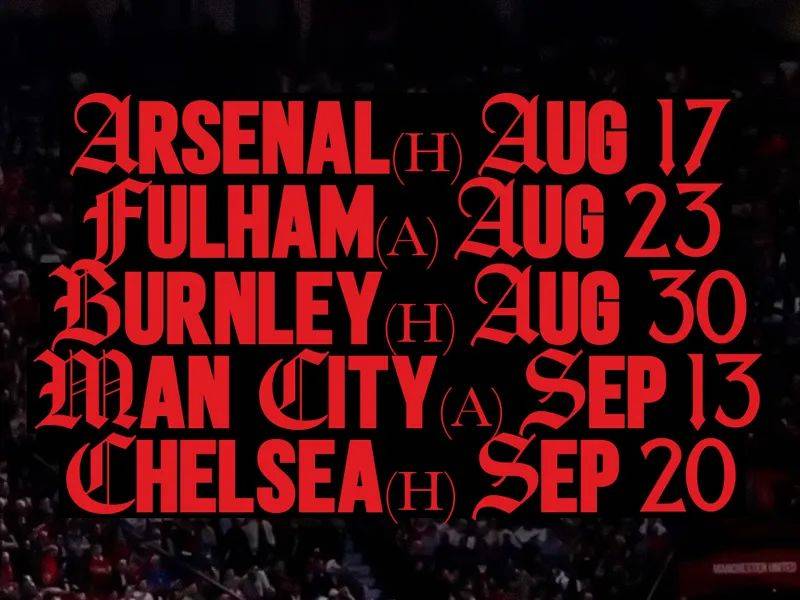 从赛程来看,曼联首轮主场面对阿森纳,随后遇上富勒姆和伯恩利,接着是为期两周的国家队比赛日,然后连续跟曼城和切尔西碰面,不仅如此,第8轮还有“双红会”,挑战卫冕冠军利物浦。